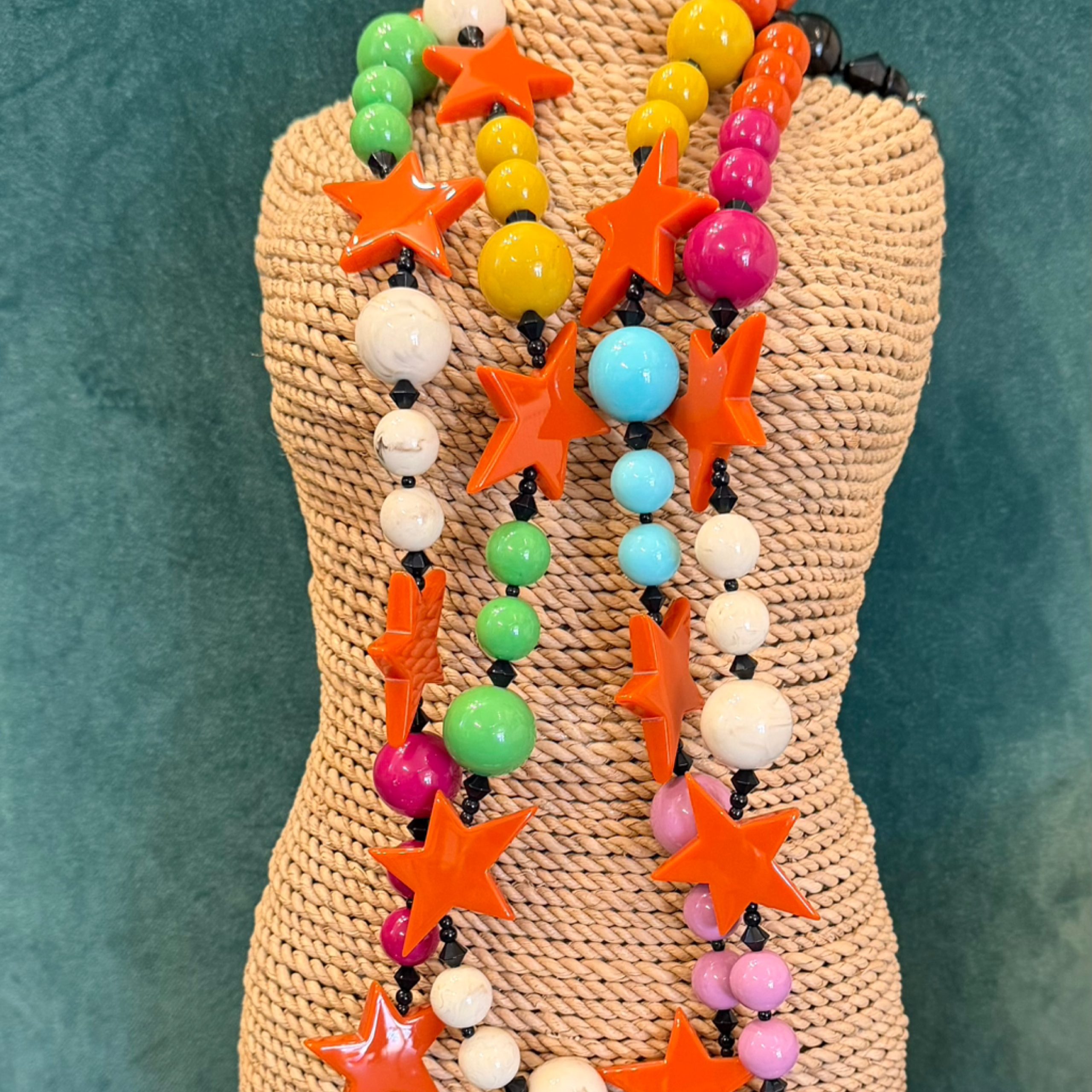 The ANGELA CAPUTI Multicoloured Stars 2 Strand Long Necklace features a striking array of vibrant colors, making it a standout accessory for any wardrobe. Crafted with a versatile design, this piece pairs effortlessly with both casual and formal attire. Its two-strand construction adds depth and dimension, while the star-shaped embellishments bring a playful yet elegant touch. Perfect for elevating everyday outfits or enhancing special occasion looks, this necklace offers a unique blend of style and functionality.