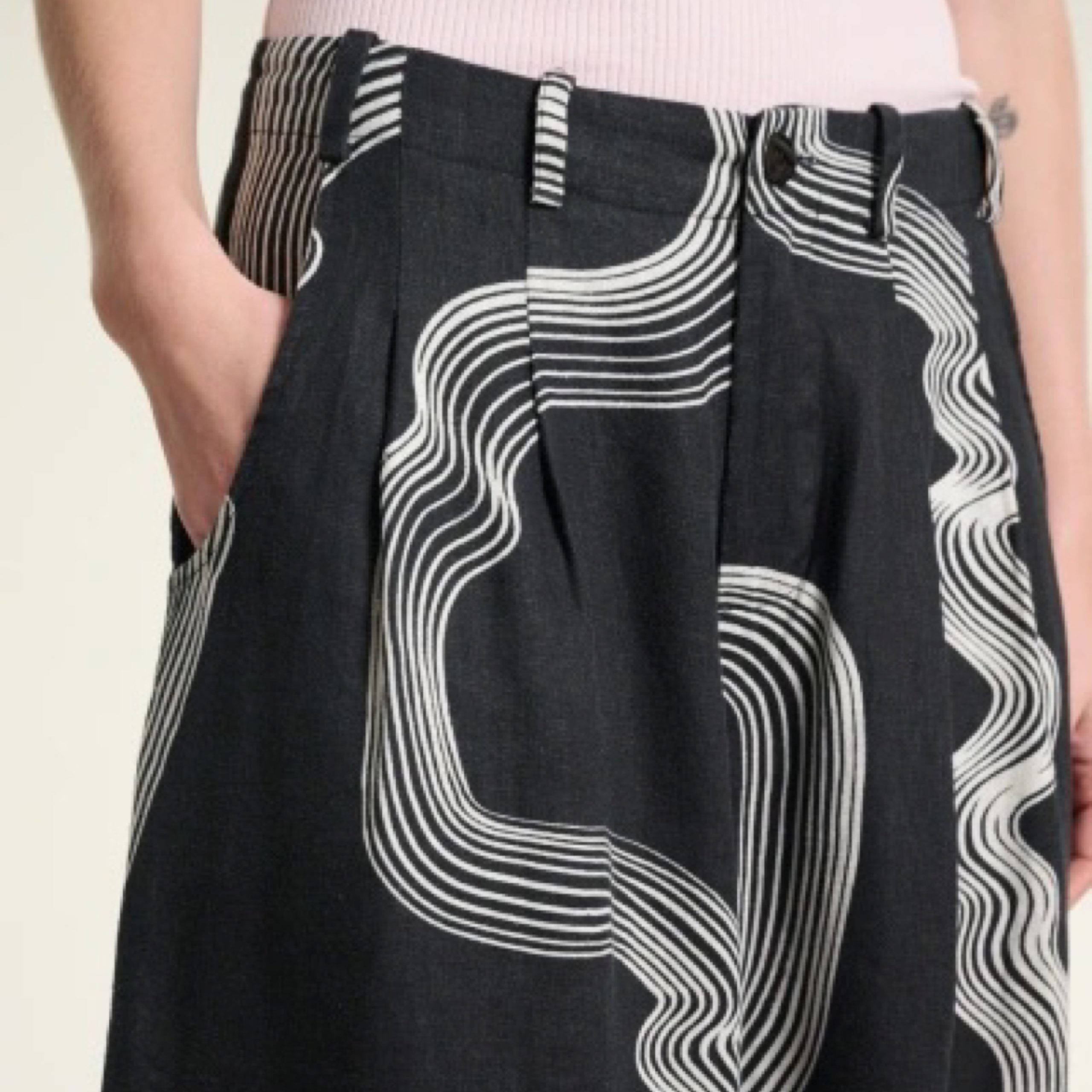 The BITTE KAI RAND Black and Cream Swirl Print Hikazu Skirt features a unique swirl pattern that adds a bold yet refined touch to your wardrobe. Designed with a versatile silhouette, it offers a flattering fit suitable for various occasions. Crafted from high-quality fabric, this skirt ensures comfort and durability while maintaining its sophisticated style.