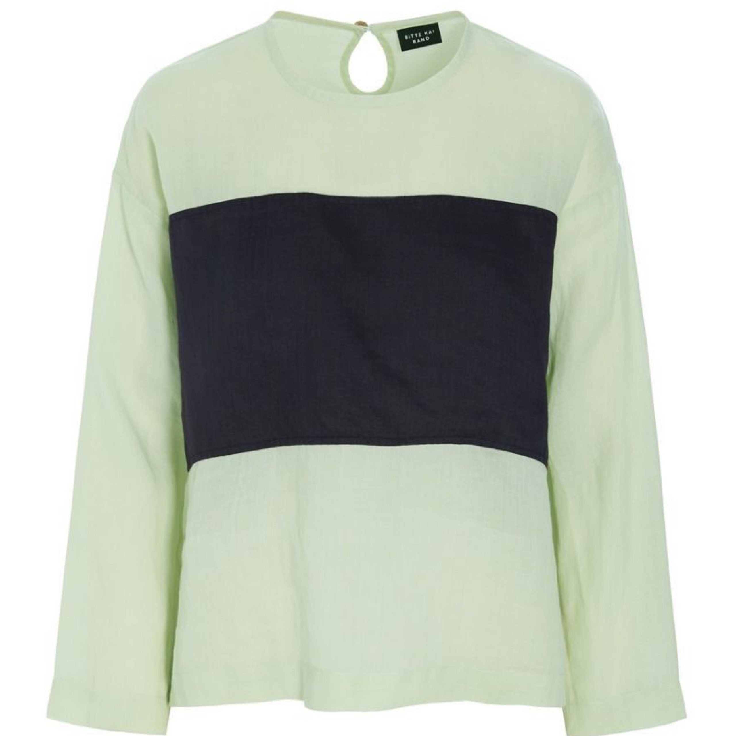 The BITTE KAI RAND Green & Black Longsleeve Linen Top is crafted from eco-friendly linen, ensuring both sustainability and comfort. Its breathable fabric provides a relaxed fit, ideal for all-day wear. The stylish design features a two-tone green and black color scheme, offering a modern and versatile aesthetic. Perfect for layering or wearing on its own, this top transitions seamlessly between casual and smart-casual outfits. The long sleeves add functionality, making it suitable for various seasons.