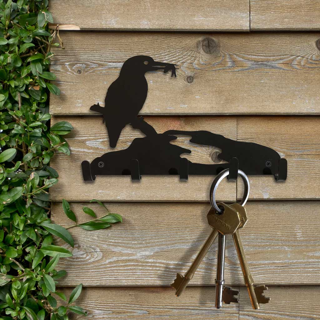Keep your space organized with the Kingfisher Key Hooks, featuring a stylish nature-inspired design. Made from zinc-coated mild steel and powder-coated for durability, these hooks are perfect for keys, small kitchen utensils, or craft tools. Designed with two holes for wall mounting (screws not included), they offer both functionality and visual appeal. Dimensions: 148 x 117 x 0.9 mm.