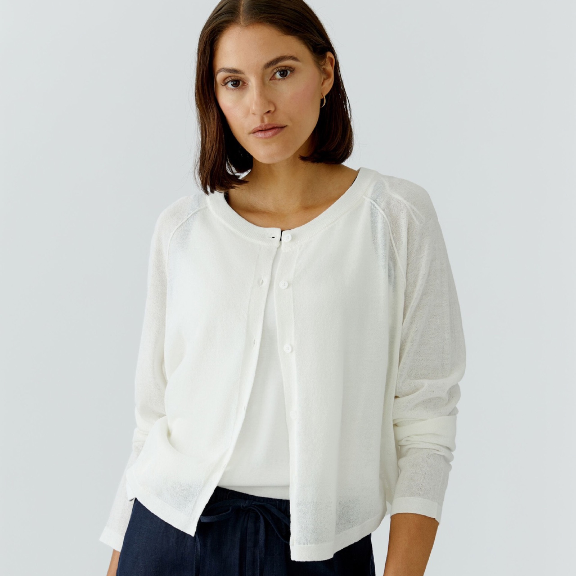 The OUI Cloud Dancer Button Through Longsleeve Cardigan combines a classic design with soft and cozy materials, ensuring all-day comfort. Featuring a button-through front, this cardigan offers versatile styling options for layering or wearing on its own. The long sleeves provide extra warmth, making it suitable for cooler days. Its timeless silhouette and neutral tone make it a wardrobe essential for both casual and semi-formal occasions. 88% viscose, 12% polyamide.