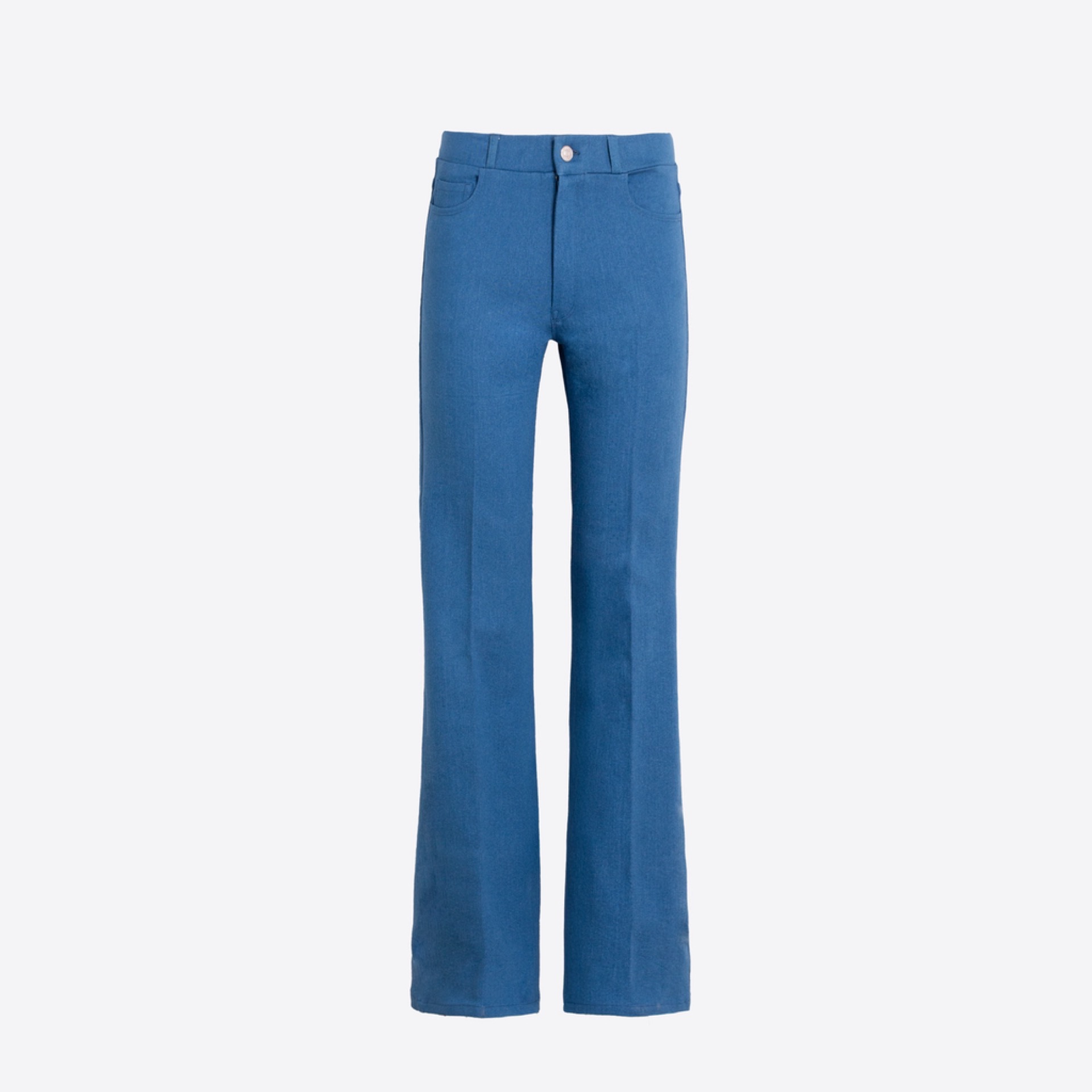 The Vilagallo Blue Flared Five Pocket Trousers feature a classic flared silhouette and a functional five-pocket design. The rich blue color adds versatility, making these trousers suitable for a variety of outfits. Crafted for both comfort and style, they are an excellent choice for everyday wear or casual occasions.
